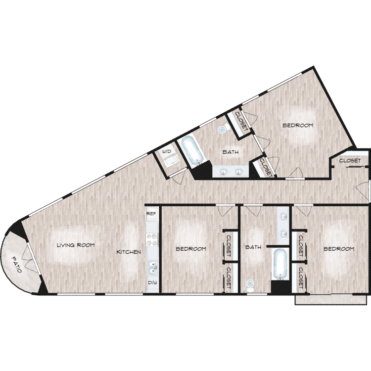 With brand-new one, two, and three-bedroom floor plans, our apartments are designed to make student life simple, comfortable, and convenient. Each layout features thoughtful details that create the perfect space to study, relax, and connect with friends. Whether you prefer living solo or sharing with roommates, we have options to fit every lifestyle.